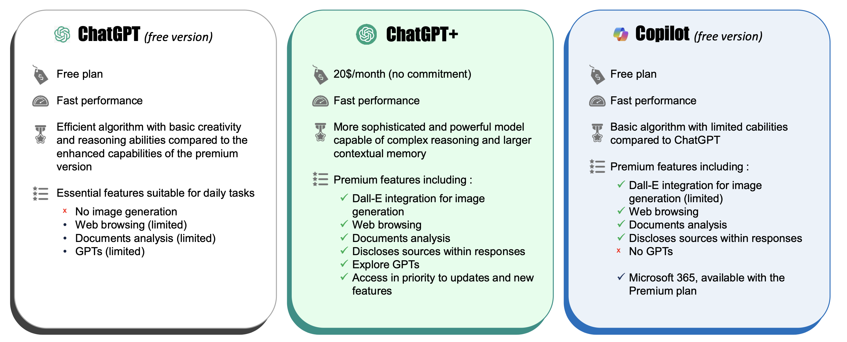 이 글에서는 Copilot의 주요 기능을 다시 살펴보고, 특히 ChatGPT 무료 버전에서는 사용할 수 없는 기능 중 일부가 Copilot에서는 제한적이지만 무료로 접근 가능하다는 점을 중심으로 설명하려고 합니다.