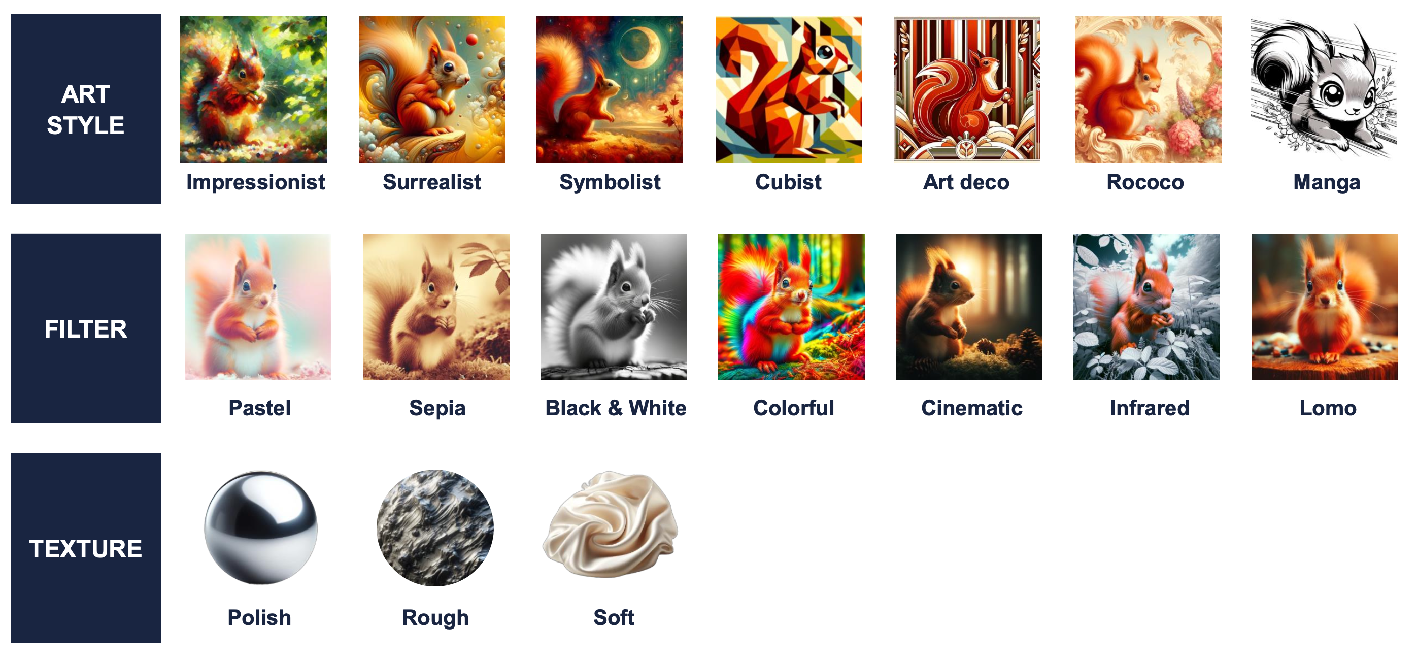 각 스타일은 몇 단어의 프롬프트만으로도 충분히 명확한 결과를 얻을 수 있고,