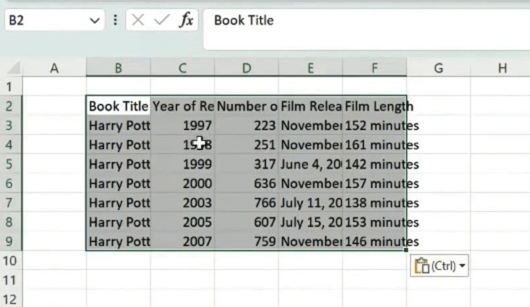 이렇게 받은 표는 복사하여 Excel이나 Google Sheets에 붙여넣을 수 있습니다.