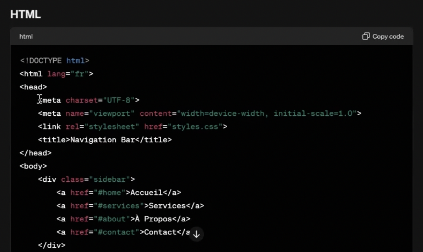 웹사이트 왼쪽에 위치한 내비게이션 바(nav bar) 코드를 HTML과 CSS로 만들어줘.