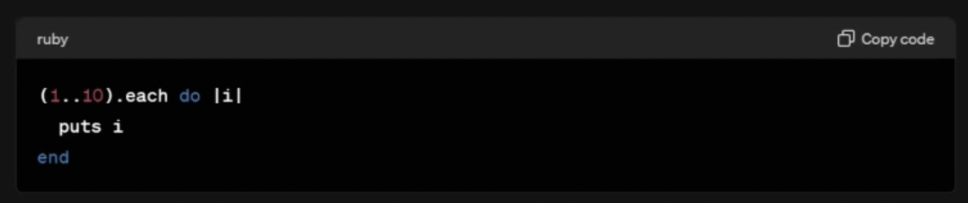 이번엔 루비(Ruby) 언어로 간단한 루프를 요청해봤습니다: