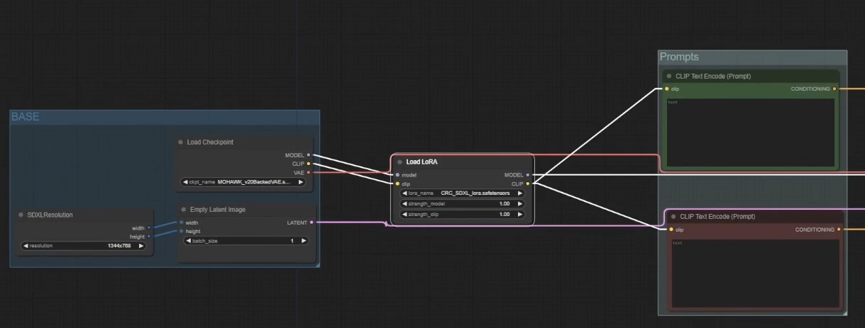 그 다음 Load LoRA 노드의 드롭다운 메뉴에서 CRC SDXL LoRA를 선택하세요.