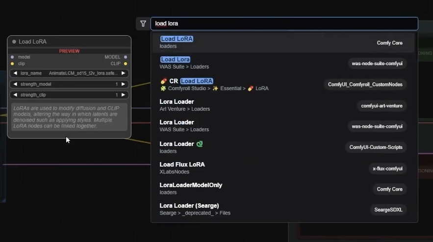 그 다음 Load LoRA 노드의 드롭다운 메뉴에서 CRC SDXL LoRA를 선택하세요.