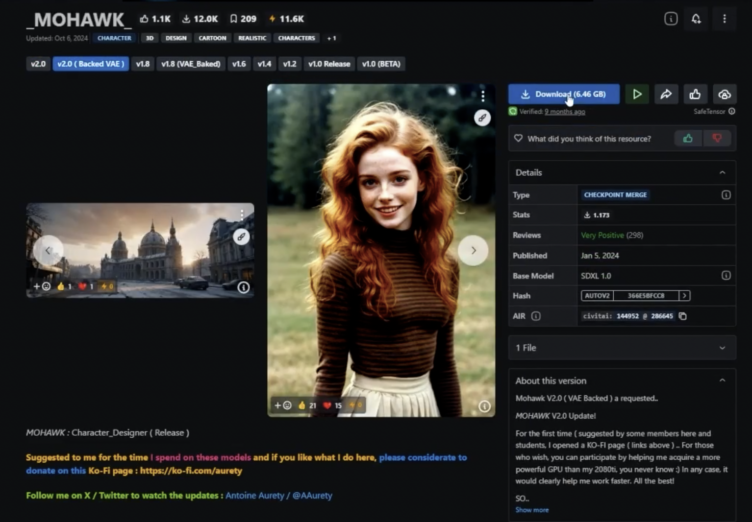 이번 예제에서는 Mohawk version 2라는 모델을 사용합니다.