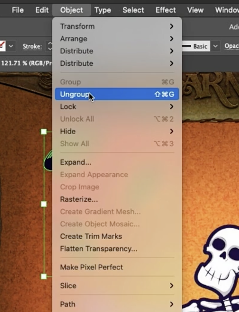 상단 메뉴 > Object > Group에서도 동일한 작업이 가능합니다.