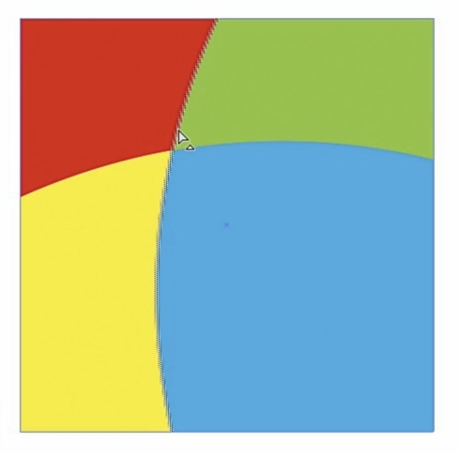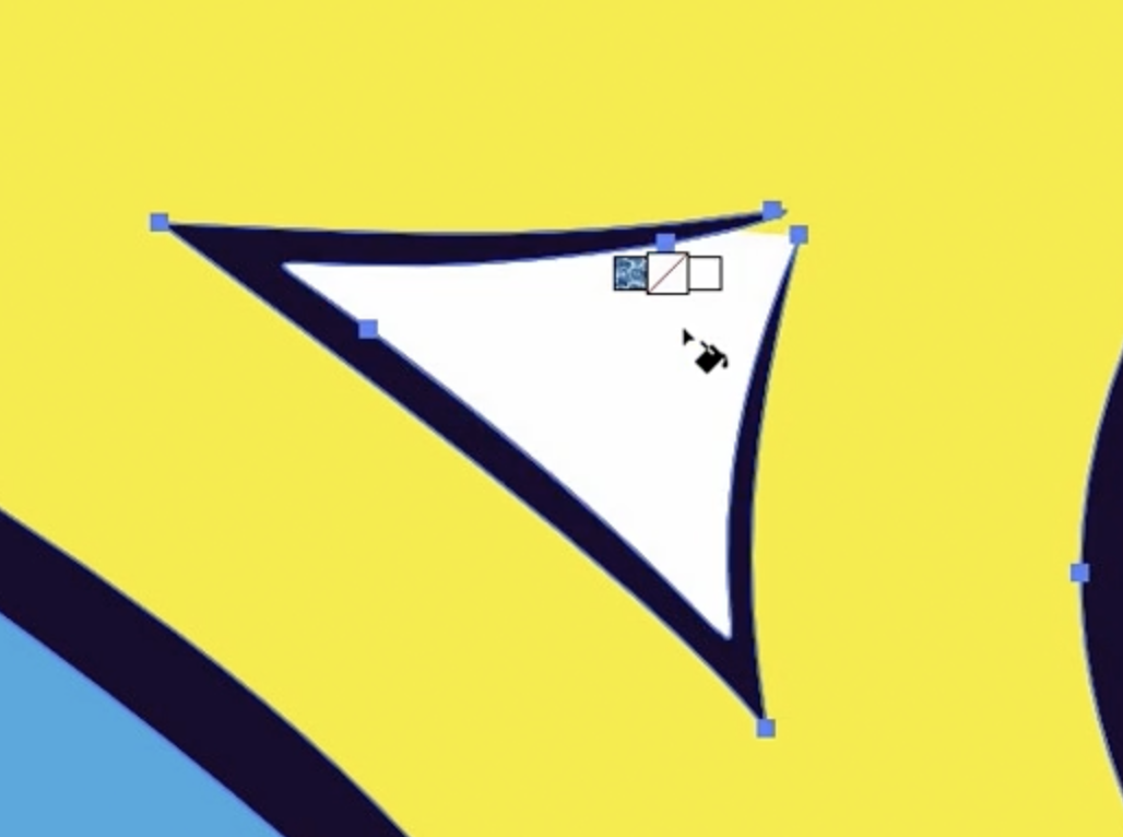 마지막으로 **Live Paint Selection tool(라이브 페인트 선택 도구)**이 있습니다. Shift-L을 누르면 이 도구를 선택할 수 있습니다. 커서를 이동하면 아트워크가 선과 사각형으로 구성되어 있음을 알 수 있습니다.