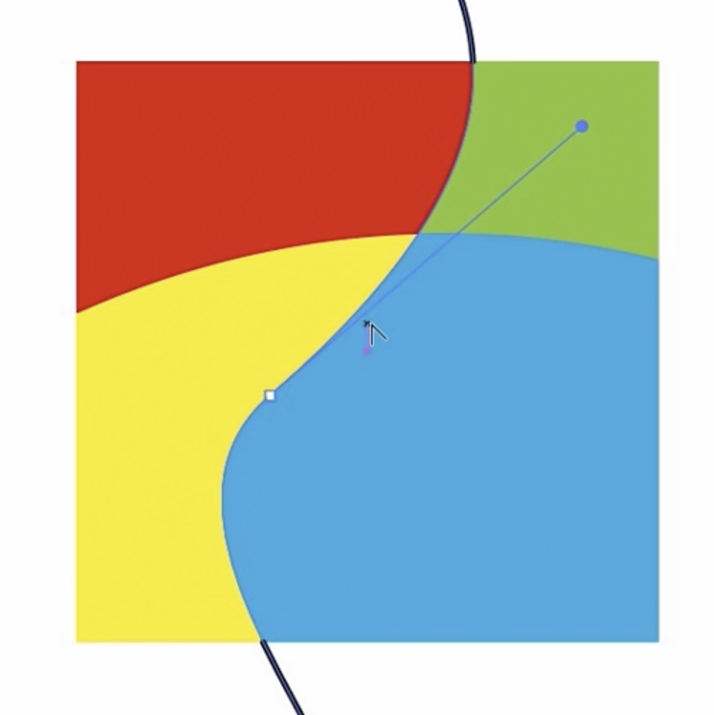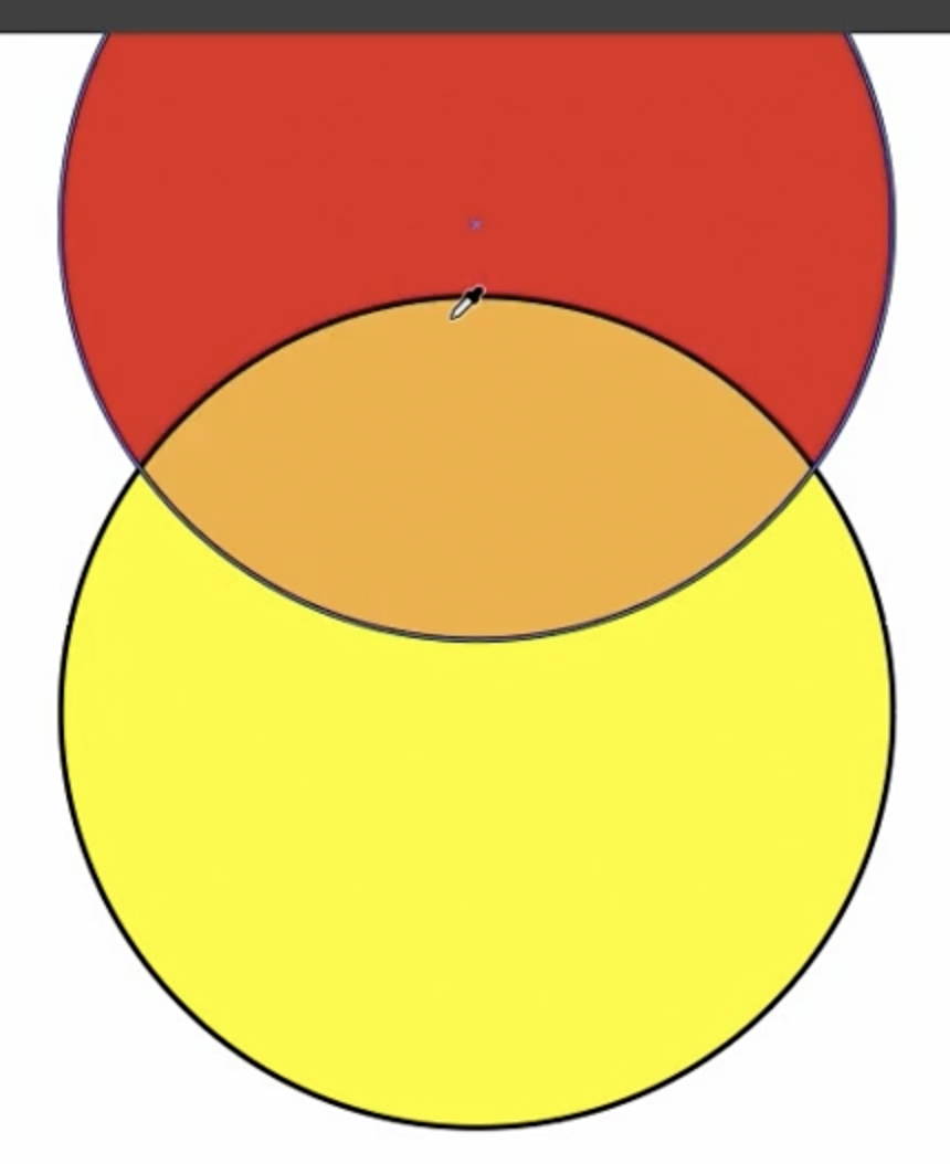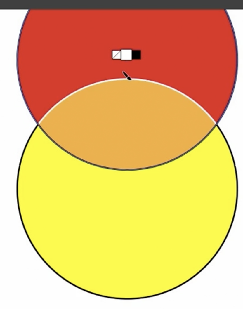 간단한 로고라고 가정해 봅시다. 만약 고객이 오렌지색 영역을 더 크게 만들고 싶어 한다면, 기존의 방식대로라면 원을 다시 그리고 Pathfinder(패스파인더)로 재구성한 다음 다시 색칠해야 할 것입니다. 하지만 라이브 페인트에서는 그럴 필요가 없습니다.