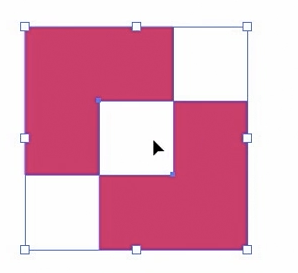 이 작업을 하면, 두 사각형이 겹친 부분이 구멍처럼 뚫리고, 배경에 있던 도형의 색상이 복합 패스의 색으로 적용됩니다.
