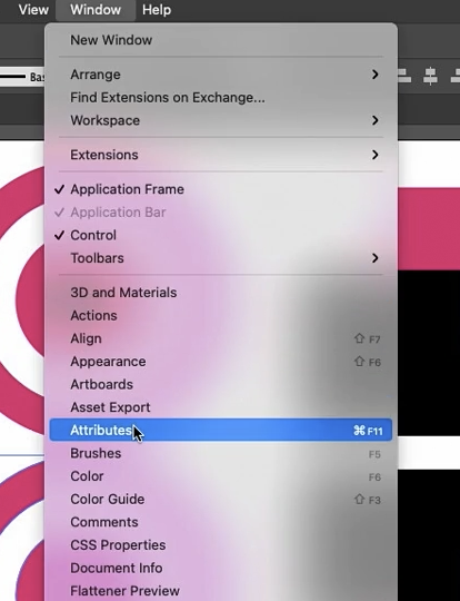 Window 메뉴 → Attributes 패널을 열고, Show Options를 클릭해 숨겨진 옵션을 표시합니다.