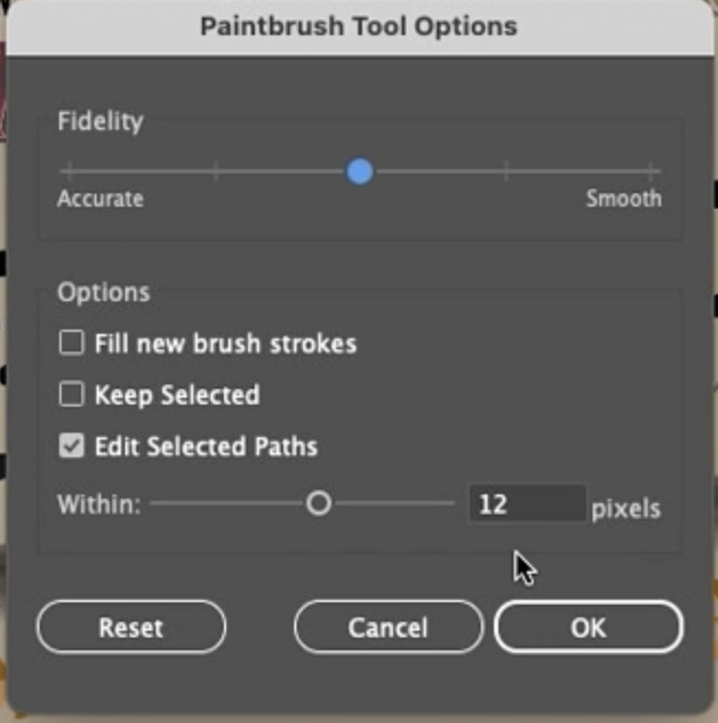 도구 상자에서 그것을 두 번 클릭하면 연필 도구처럼 정확도 슬라이더가 있고, 선택된 상태를 유지하는 옵션이 있습니다. 따라서 연필 도구처럼 편집할 수 있고, 특정 범위 내에서 선택된 경로를 편집하는 기능을 제공합니다. 따라서 브러시 선을 염두에 두고 실제로 그림을 그리고 싶다면, 브러시를 선택하고, 브러시 도구를 선택한 다음 그림을 그릴 수 있습니다. 하지만 그렇지 않더라도 일러스트레이터는 어떤 경로든 선택한 다음 브러시 선을 적용하는 것을 전혀 개의치 않습니다.