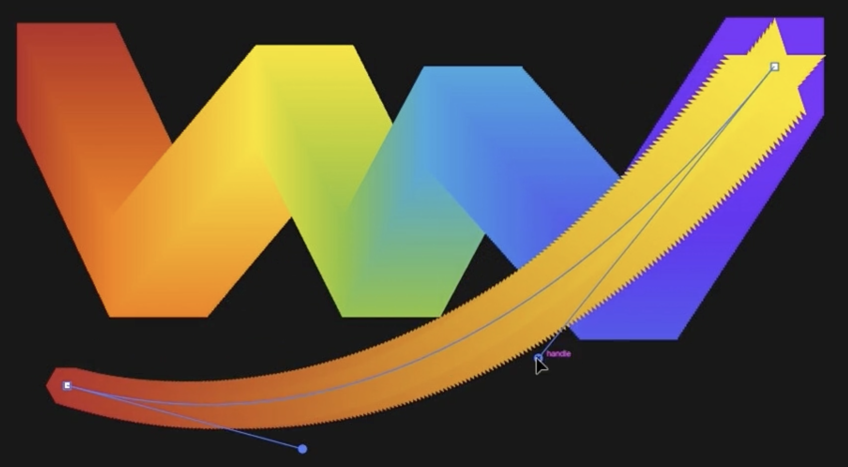 이제 블렌드 스파인을 클릭합니다. 펜 도구와 함께 있는 기준점 변환 도구를 사용할 것입니다. 키보드에서 Shift를 누른 채 C를 누릅니다. 이 도구는 패스를 조작하고 점을 변환하는 데 사용됩니다. 펜 도구 연습에서는 Alt 또는 Option 키를 누른 채 일시적으로 사용했습니다. 선으로 이동하면 아이콘이 변경되는 것을 볼 수 있습니다. 여기서 패스를 구부릴 수 있습니다. 이제 핸들이 생겼으므로 원하는 대로 구부릴 수 있습니다.
