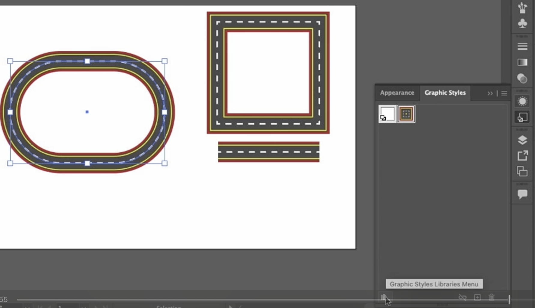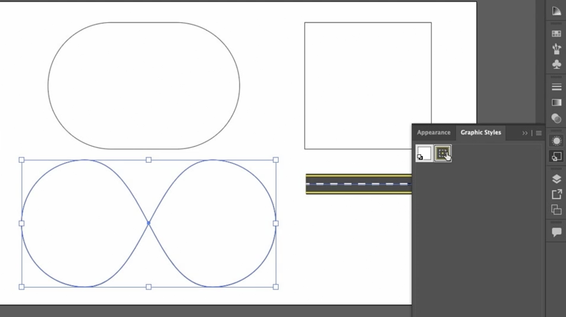 그래픽 스타일을 만드는 방법은 다음과 같습니다. 패널로 드래그하여 그래픽 스타일을 만들 수 있습니다. 또는, 선택한 상태에서 여기 있는 새 그래픽 스타일 옵션을 클릭할 수 있습니다. 제가 방금 Alt 또는 Option 키를 누른 채로 클릭하여 이름을 지정할 수 있도록 했습니다. 물론 필수는 아니지만 유용합니다.