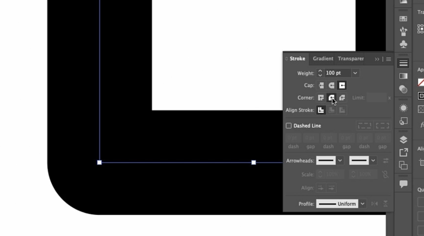 이걸 Round Join(라운드 조인) 으로 바꾸면 코너가 둥글게 처리되고,