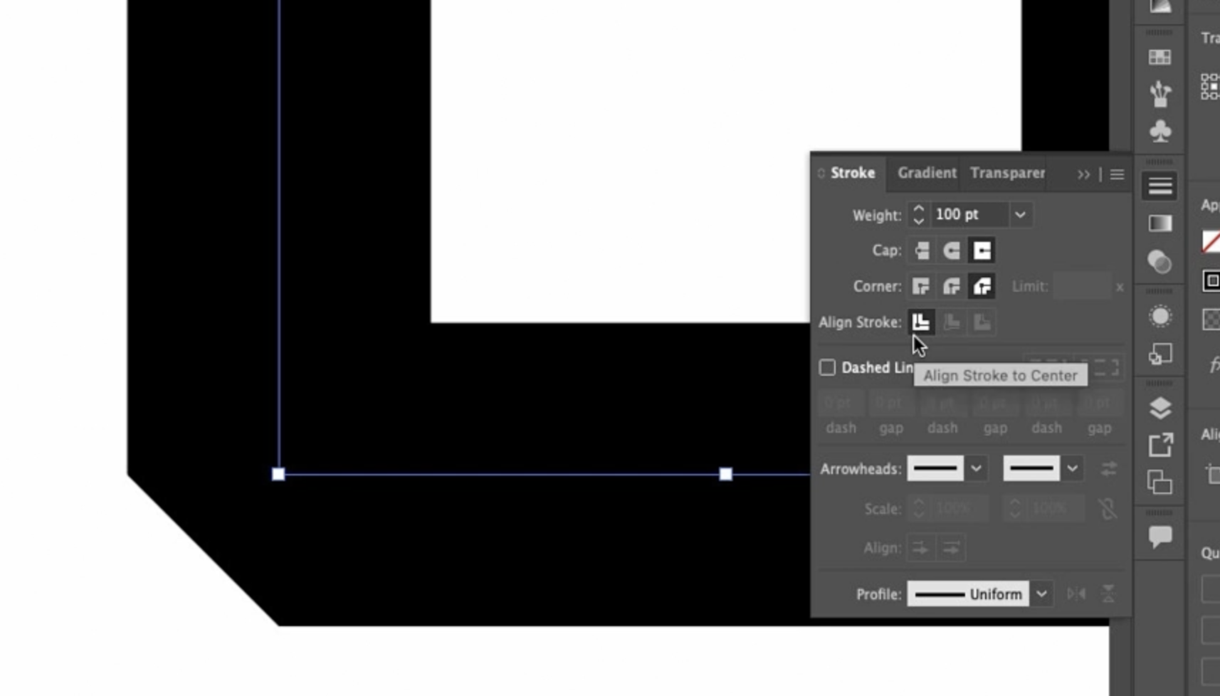 이건 벡터 선을 기준으로 스트로크가 양쪽으로 균등하게 퍼진 상태입니다.
