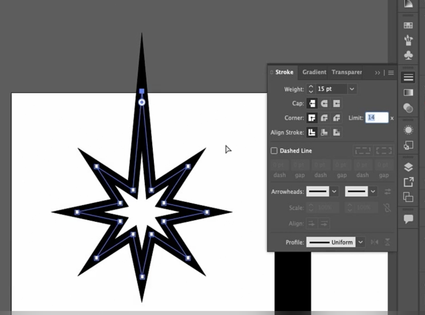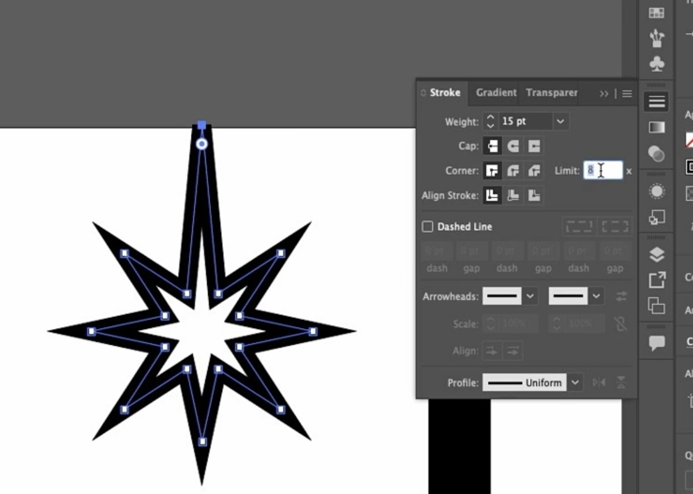 그 이유는 Miter Limit(마이터 제한) 을 초과했기 때문입니다.