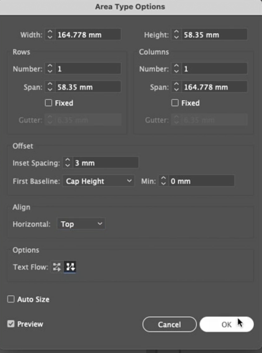 여기까지입니다. 영역 문자(area text) 작업 방법입니다. **연결된 텍스트(threaded text)**를 만들 수 있습니다. 또한 이제 포함된 문자에 적합한 간격을 갖도록 **텍스트 상자(text box)**를 설정하는 방법도 알게 되었습니다. 감사합니다.