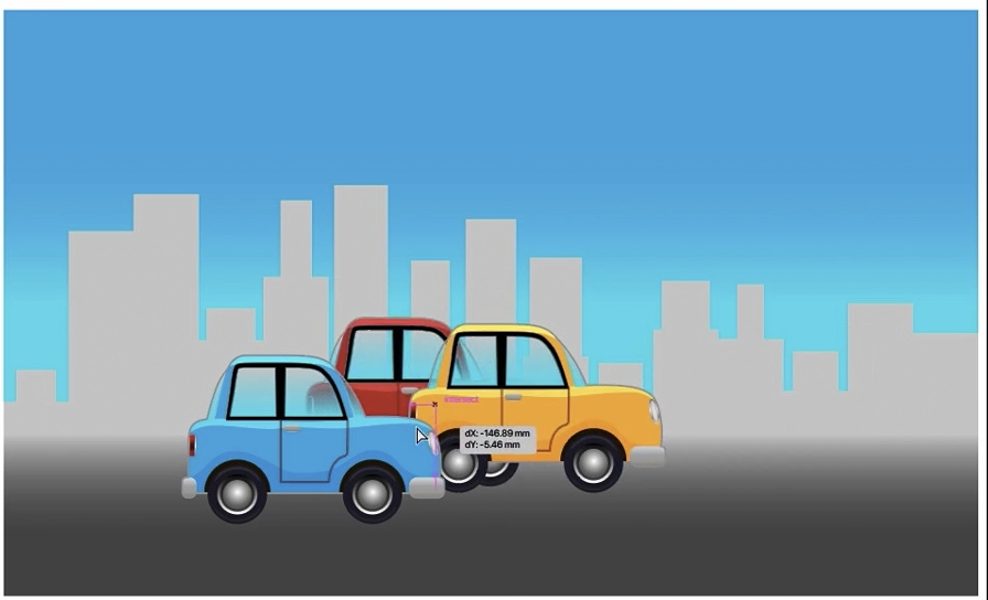 자동차들을 이 장면으로 끌어와서 적절히 배치해봅시다.
