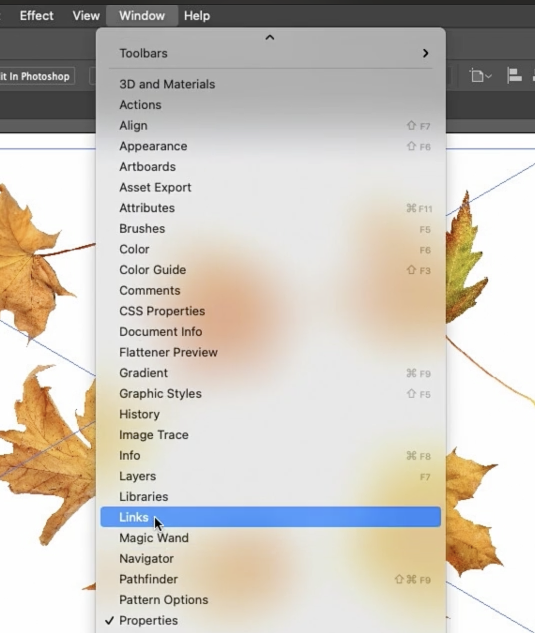 - 창(Window) > 링크(Links) 패널을 통해 접근