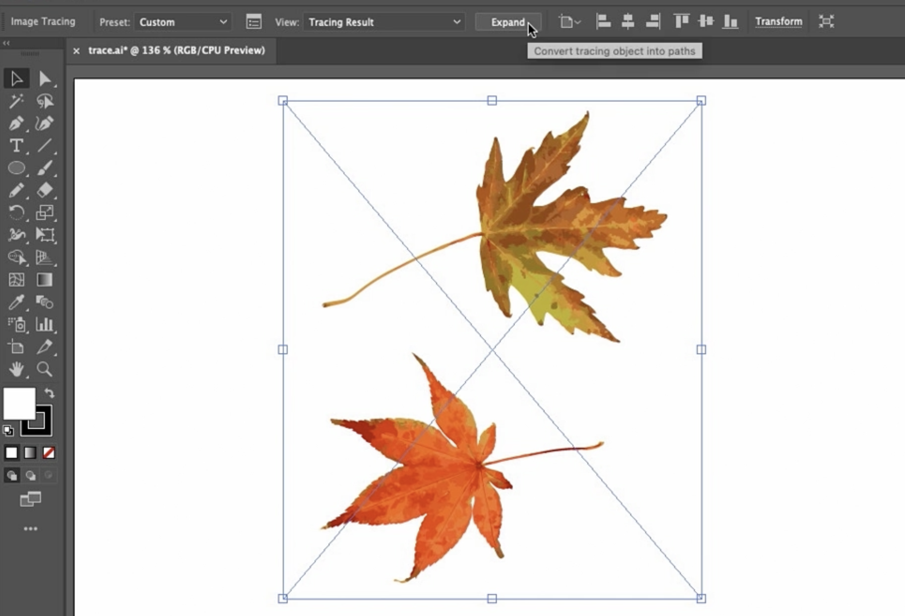 • 확장을 클릭하면 이미지가 벡터 오브젝트의 집합으로 변환됩니다. 이제 이 벡터들은 흰색 배경 없이 독립적으로 존재합니다.