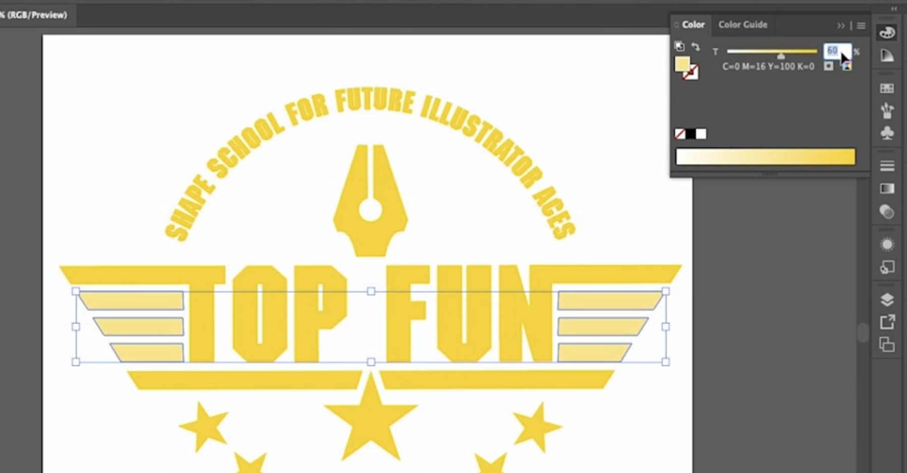 이제 전체 선택을 해제하고, 날개 디테일만 선택한 후 컬러 패널에서 틴트(tint)를 만들어 봅니다. 예를 들어 50%로 조정해 보면 꽤 괜찮은 느낌이 납니다.