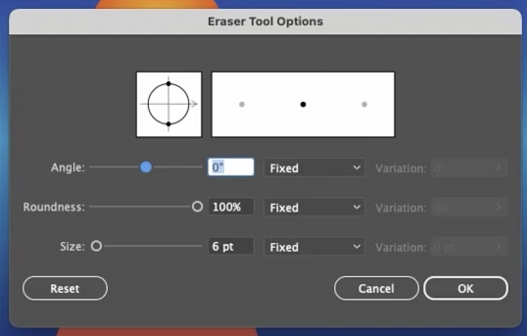 지우개 도구를 더블 클릭하면 세 가지 옵션을 확인할 수 있습니다: