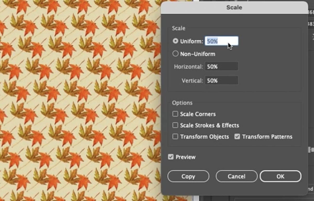 이것이 패턴을 원하는 크기로 변형하고 배율을 조정하는 방법입니다. 물론 회전과 같은 다른 변형에도 동일하게 적용됩니다.