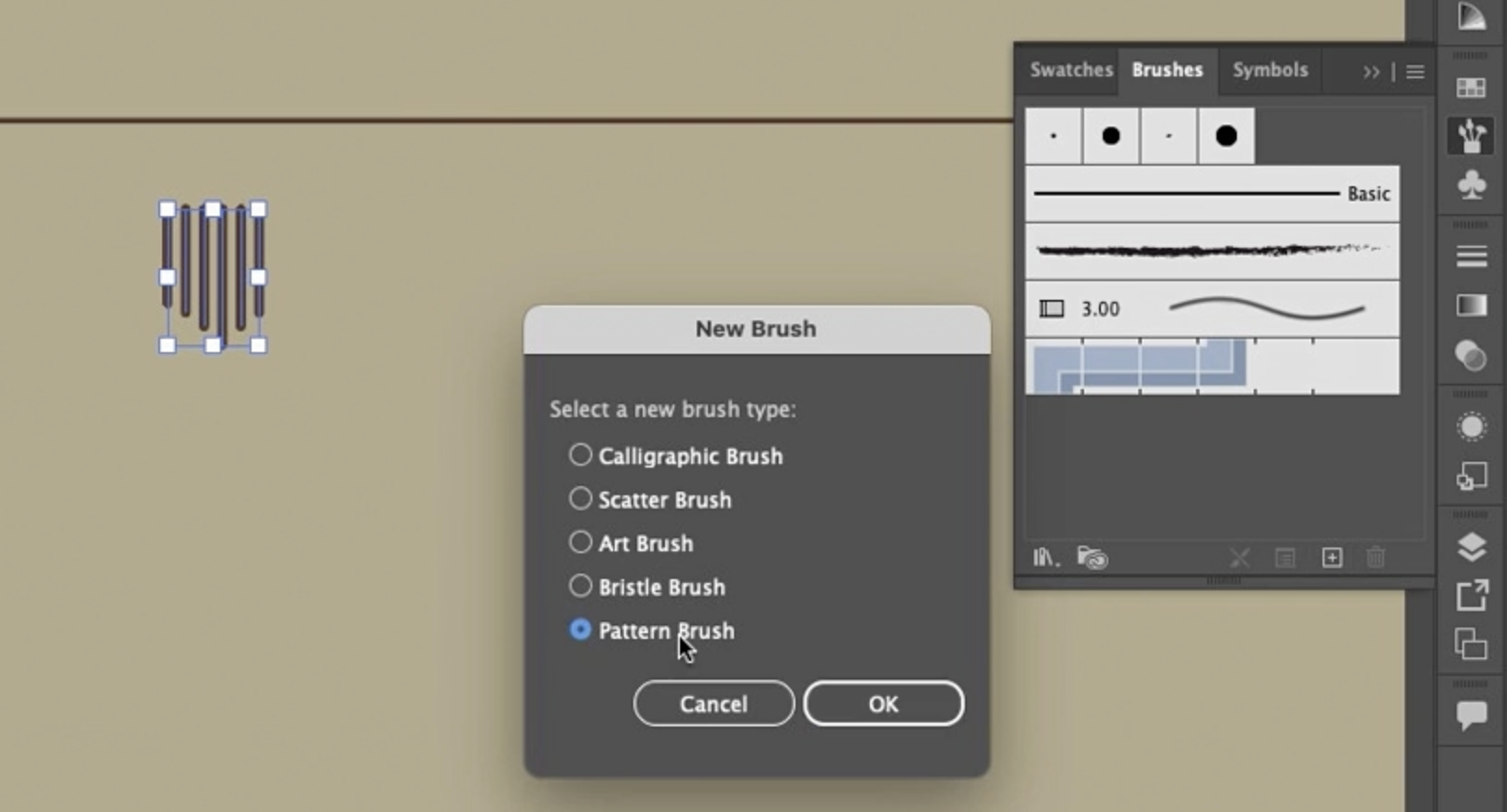 - 패턴 브러시 선택: 대화 상자가 나타나면 **패턴 브러시(Pattern Brush)**를 선택합니다.