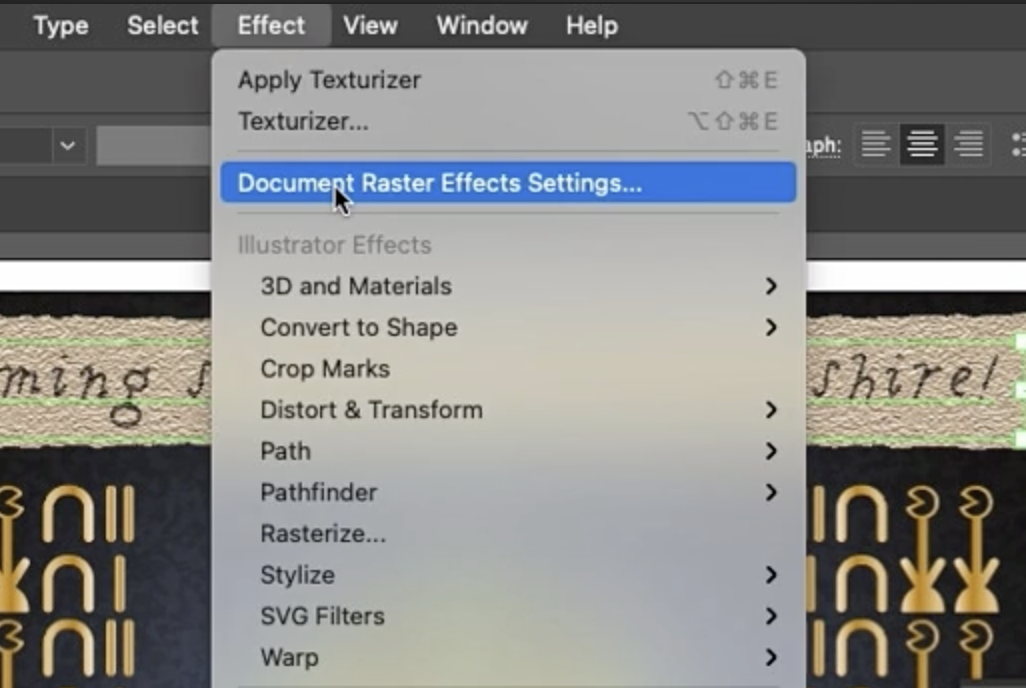 만약 변경해야 한다면, 언제든지 텍스처라이저를 클릭하여 약간 다르게 모델링할 수 있습니다. 200%로 스케일링된 것을 볼 수 있습니다. 괜찮습니다. 여전히 파일 내에 존재하는 300PPI 이미지를 생성할 것입니다. 하지만 보시다시피 완전히 편집 가능합니다. 특히 인쇄물로 나가는 경우 문서 래스터 효과 설정에 대해 알아야 합니다.