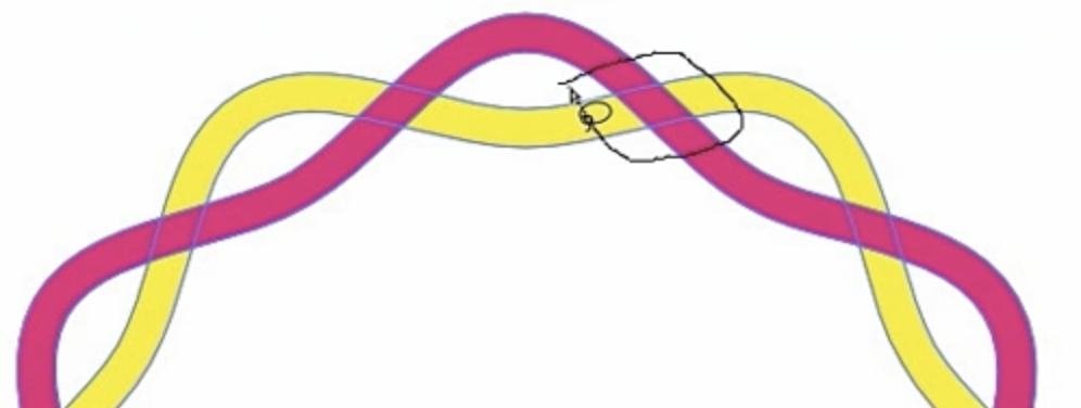 그래픽을 **Expand(확장)**하거나 **Expand to Object and Fill(오브젝트 및 채우기로 확장)**을 선택하면 결과가 약간 달라집니다. 보시다시피 안쪽에 작은 마스크 같은 것들이 많이 있습니다. 실제로 제가 올가미로 그린 자국들이 마스크를 만들어 **Intertwine(뒤섞기)**이 작동하게 했습니다. 하지만 대부분의 경우 그렇게 할 필요는 없으며, 실제 그래픽 자체가 필요하기 때문에 크게 걱정할 필요는 없습니다. 물론 그래픽을 잘라야 하는 시스템에서 작업하는 경우에는 전혀 다른 문제입니다. 하지만 이것이 Intertwine(뒤섞기) 기능입니다. 앞으로 이 기능이 좀 더 발전하기를 바라지만, 지금으로서는 환상적입니다.