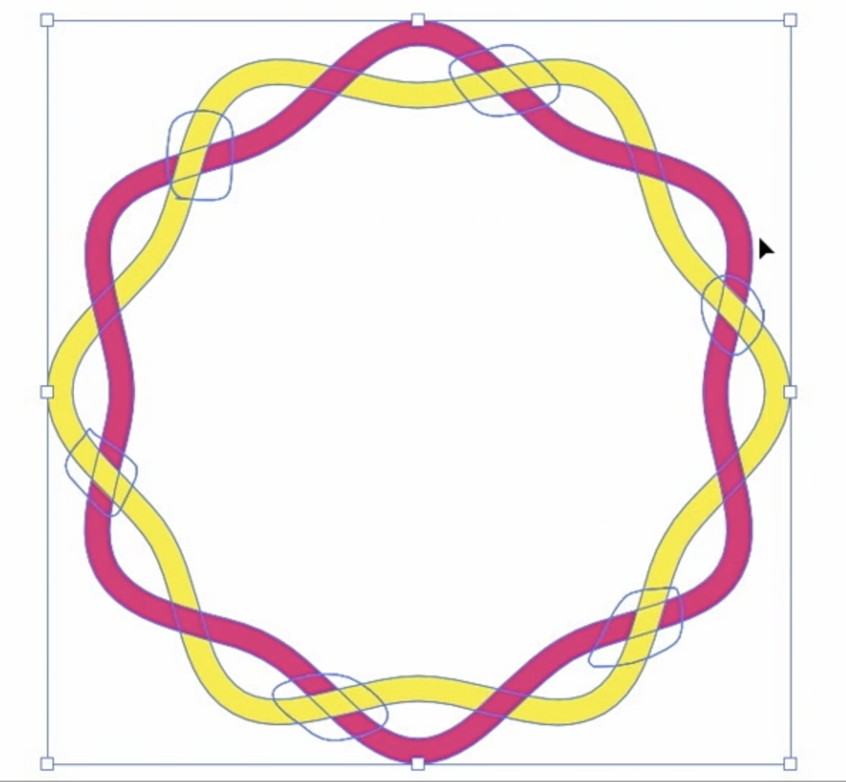 이제 이 올가미 도구를 사용하여 일부 교차점을 드래그해 보겠습니다. 보시다시피 이제 **Intertwine(뒤섞기)**이 적용되었습니다. 하나를 건너뛰고 다음으로 이동하고, 다시 하나를 건너뛰고 다음으로 이동하는 식으로 계속합니다. 만약 제가 실수로 잘못된 것을 만들었다면, 바로 Edit(편집) 옵션으로 돌아가서 수정할 수 있습니다. 보시다시피 시각적으로 원하는 결과를 정확하게 얻었습니다. Intertwine(뒤섞기) 기능에는 많은 가능성이 있습니다.