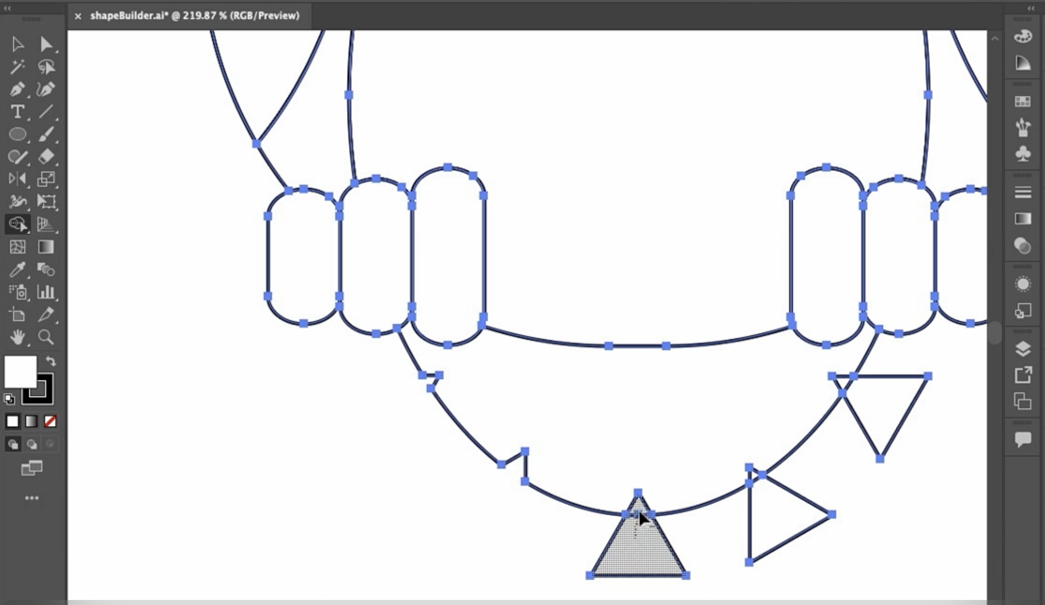 그리고 아래쪽 모양에서 이 삼각형들을 빼서 꼬리에 약간의 특징을 추가할 것입니다. Alt 또는 Option 키를 누른 상태에서 클릭하고 드래그하여 모양에서 뚫어내면 됩니다. 이것이 얼마나 효과적이고 빠르게 작업할 수 있는지 알 수 있습니다.