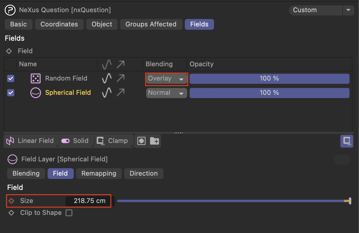 - nxQuestion을 사용하여 필드 안에 있는 파티클을 두 번째 그룹으로 이동시키도록 설정합니다.