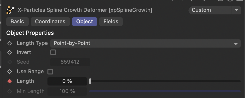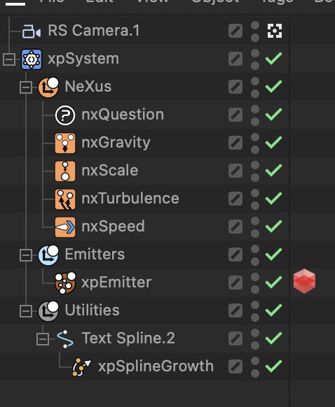 Length 가 0%에서 100%으로 애니메이션 설정하고 완성된 Line이 보여주는 시간을 설정한 후 다시 0%으로 애니메이션을 주어 Line이 사라지게 설정하면 Particles도 사라지게 됩니다. 그러기 위해 xpEmitter는 방출부분이 Edge로 설정해주면 됩니다. xpSplineGrowth는 Spline Object에 Child로 설정해서 효과를 줍니다.