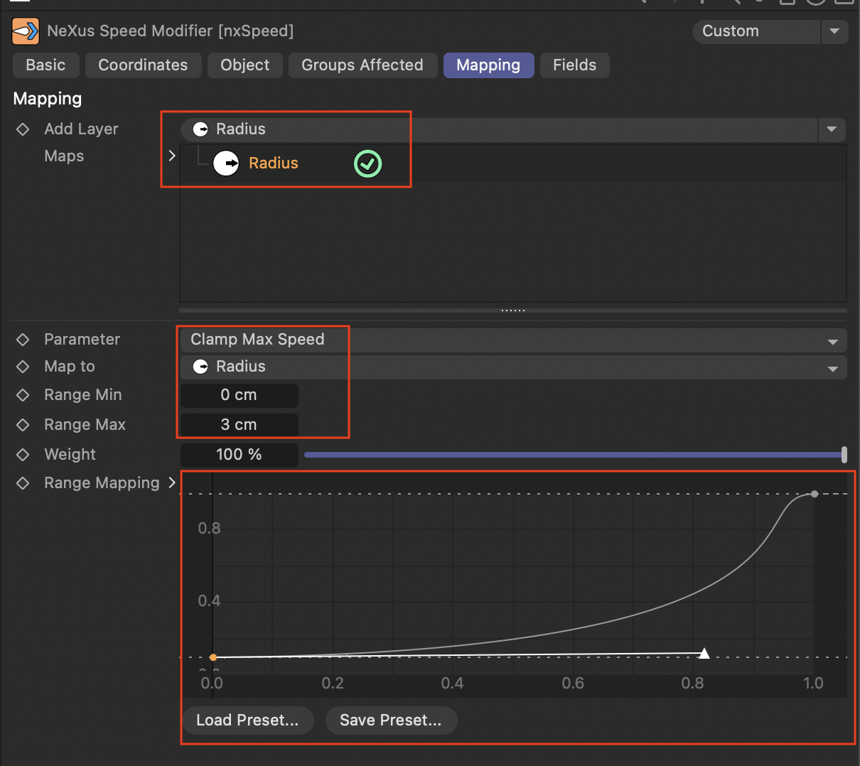 - 반경에 따라 속도를 매핑하여 작은 파티클은 더 느리게 이동하도록 설정.