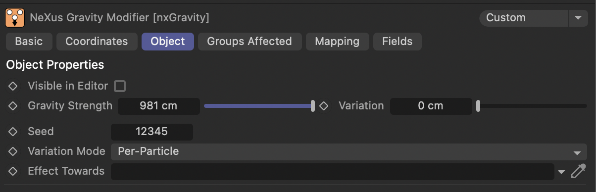 - Nexus에서 중력을 추가하여 파티클이 바닥으로 떨어지도록 설정.