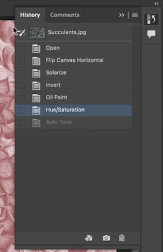 이 설정은 History 패널 우측 상단의 플라이아웃 메뉴 > History Options에서 Nonlinear History를 설정하면 바꿀 수 있습니다.