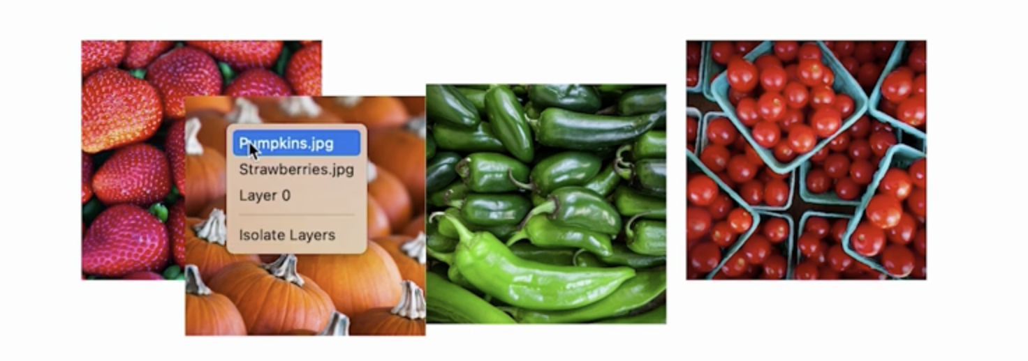 예를 들어 Layer 0, Tomatoes, Pears 등을 클릭하면 해당 레이어가 바로 선택됩니다.