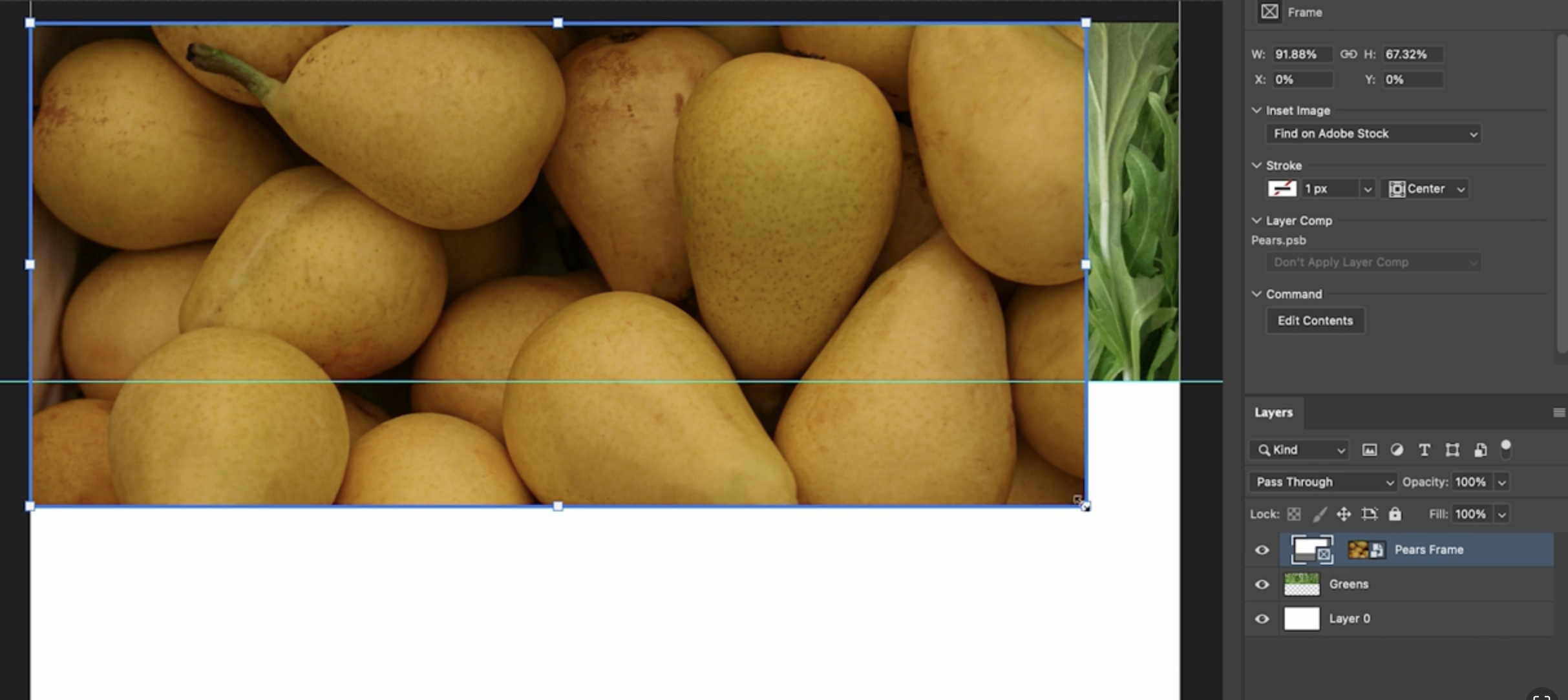 이제 다시 Greens 레이어를 보이게 하고 타겟팅한 뒤, 이 레이어를 위쪽 절반만 표시하고 싶다고 가정해 봅시다.