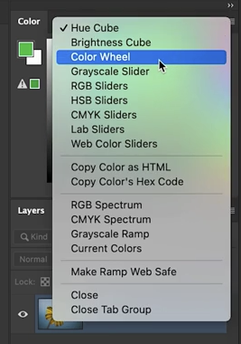 - 추천할 만한 보기 방식은 **컬러 휠(Color Wheel)**입니다. 원형 휠을 통해 **색상(Hue)**을 선택하고, 삼각형 내부에서 채도와 명도를 조정할 수 있습니다.