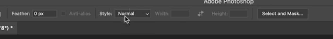 - 상단 옵션 바에서 Style(스타일) 을 Fixed Size(고정 크기) 로 설정합니다.