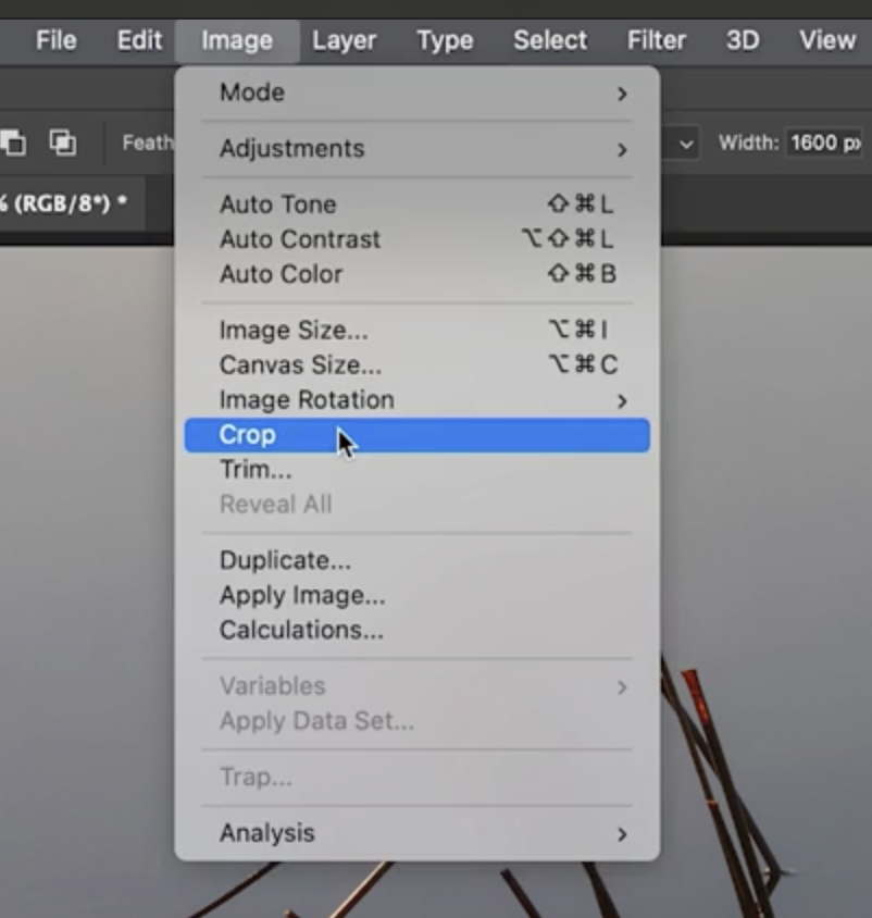 그래서 여기서는 Image Size 창을 취소(cancel) 하고, C 키를 눌러 Crop Tool(자르기 도구) 를 선택합니다.