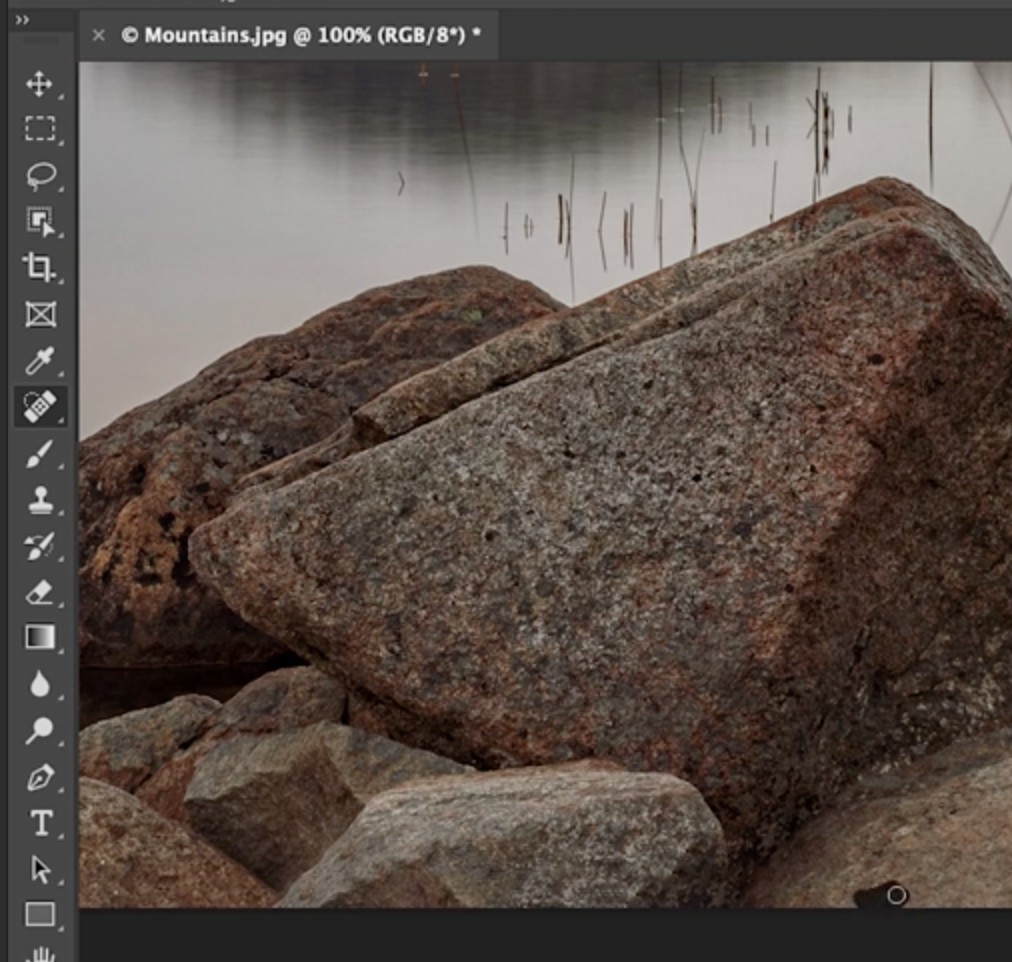 이제 반복되는 패턴이 있는지 확인합니다. 만약 반복되는 패턴이 눈에 띄면, 복구 도구 중 하나인 Spot Healing Brush Tool을 사용할 수 있습니다. 예를 들어 작은 점이 반복되는 경우, 해당 부분을 클릭하면 Photoshop이 그 자리를 자동으로 채워줍니다.