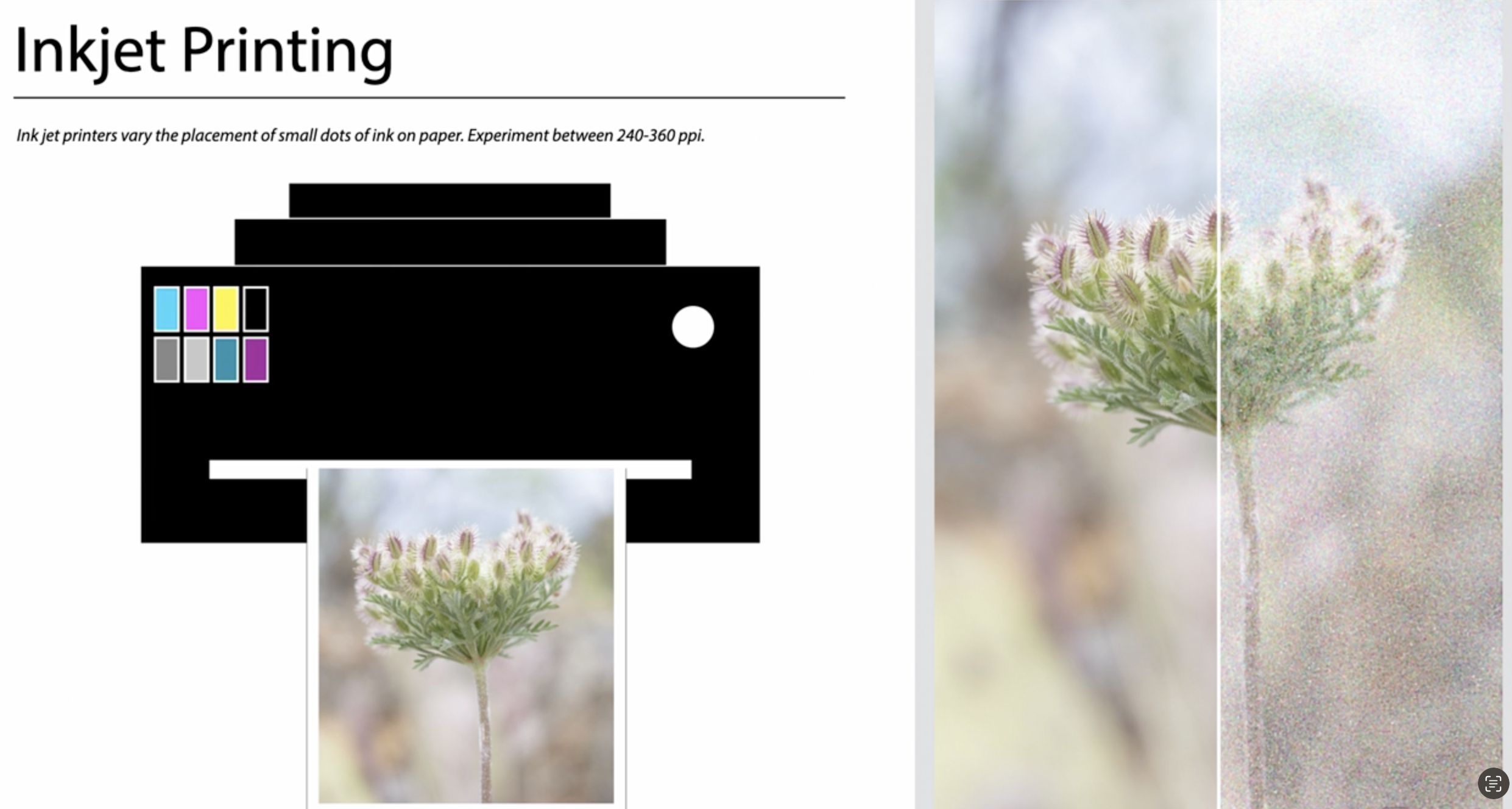 - 잉크젯 인쇄는 일반적으로 300~360 PPI 사이의 해상도가 필요합니다.