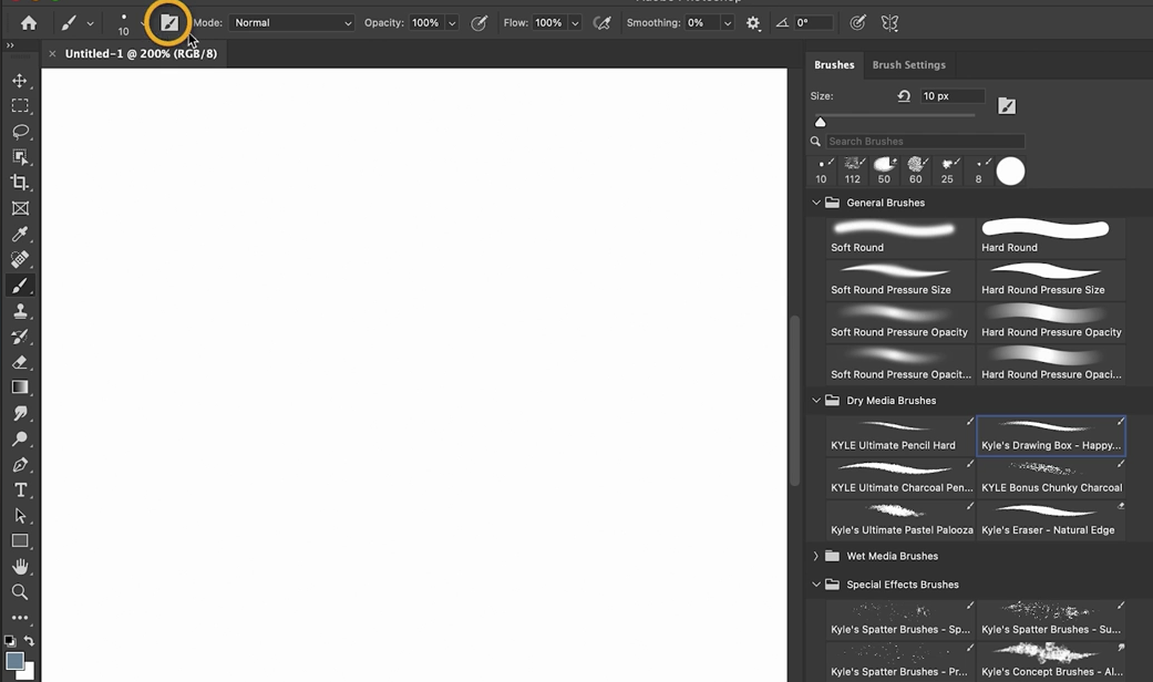 다시 일반 브러시(General Brushes) 의 Hard Round 브러시를 선택하고 브러시 설정으로 돌아갑니다.