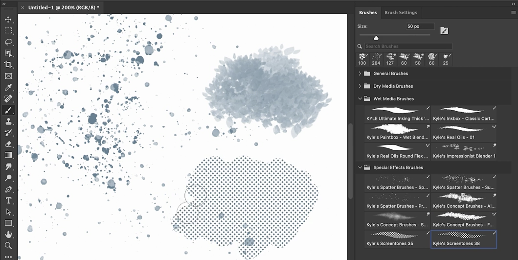 - 예: Natural Media Brushes, Bristle Qualities 조절 가능