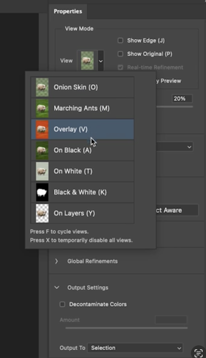 - Select > Select and Mask 메뉴로 이동해 선택을 세밀하게 조정합니다.