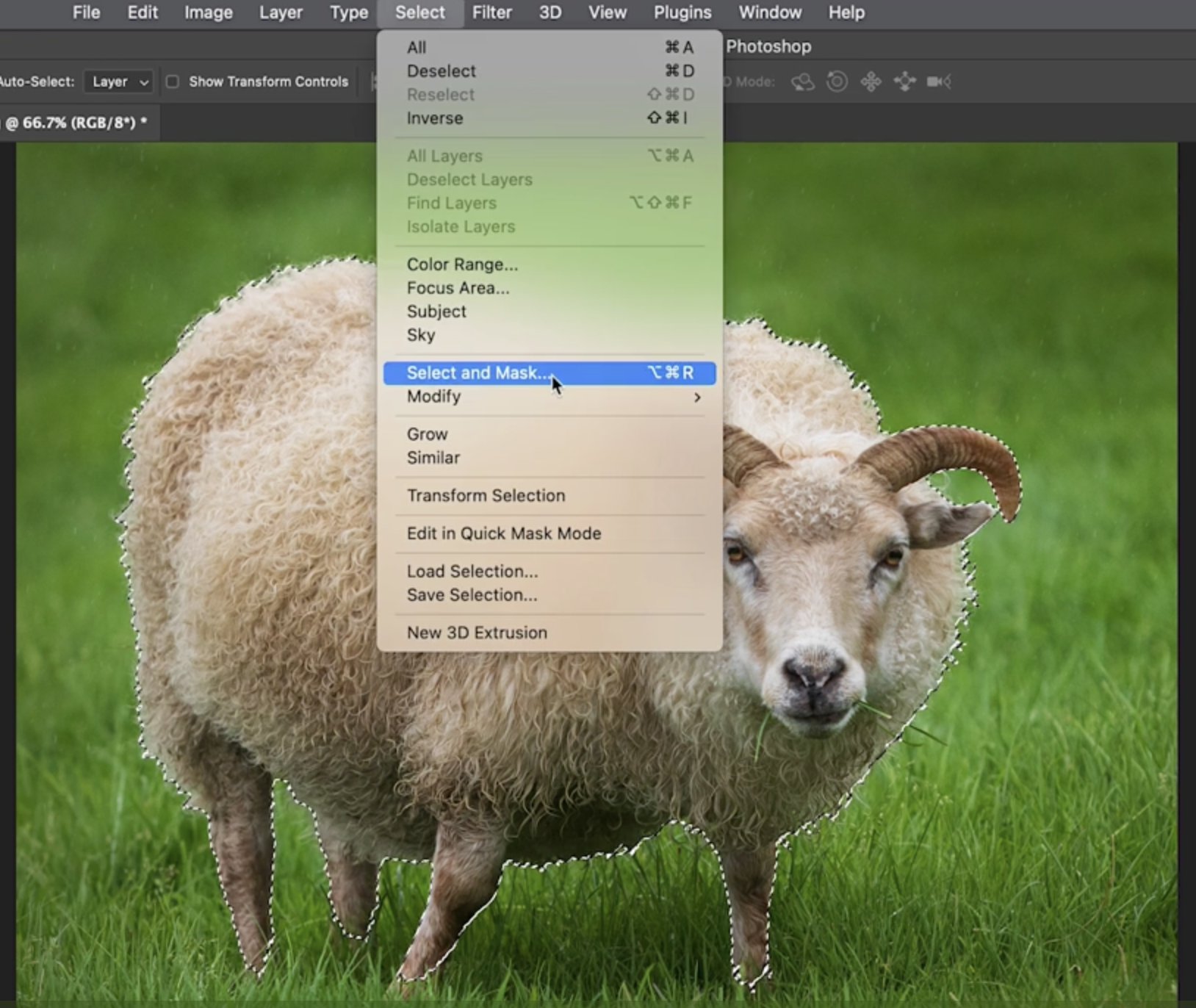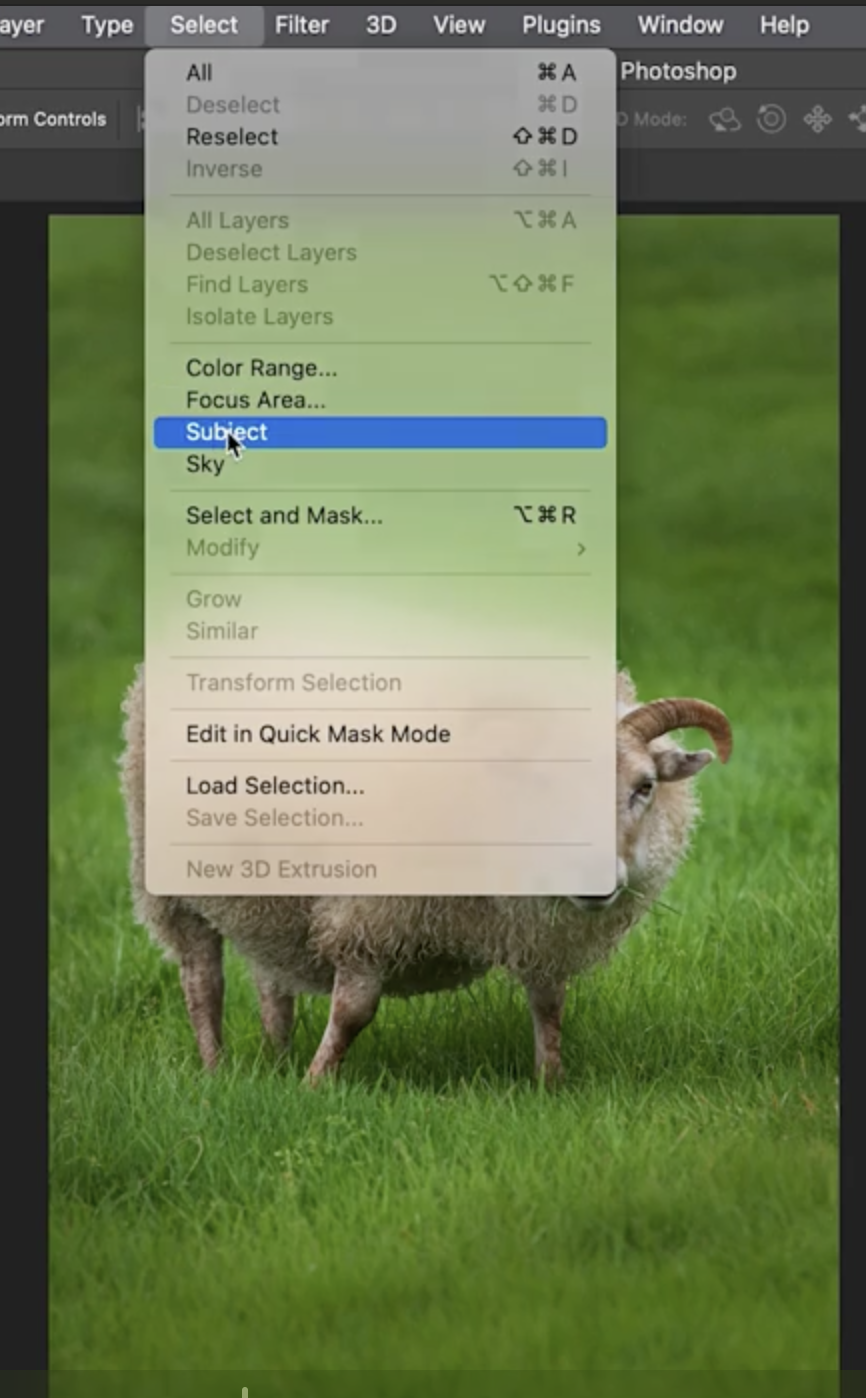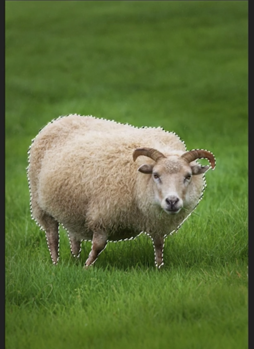 - Photoshop이 전체 이미지를 분석해 양을 자동으로 선택합니다.