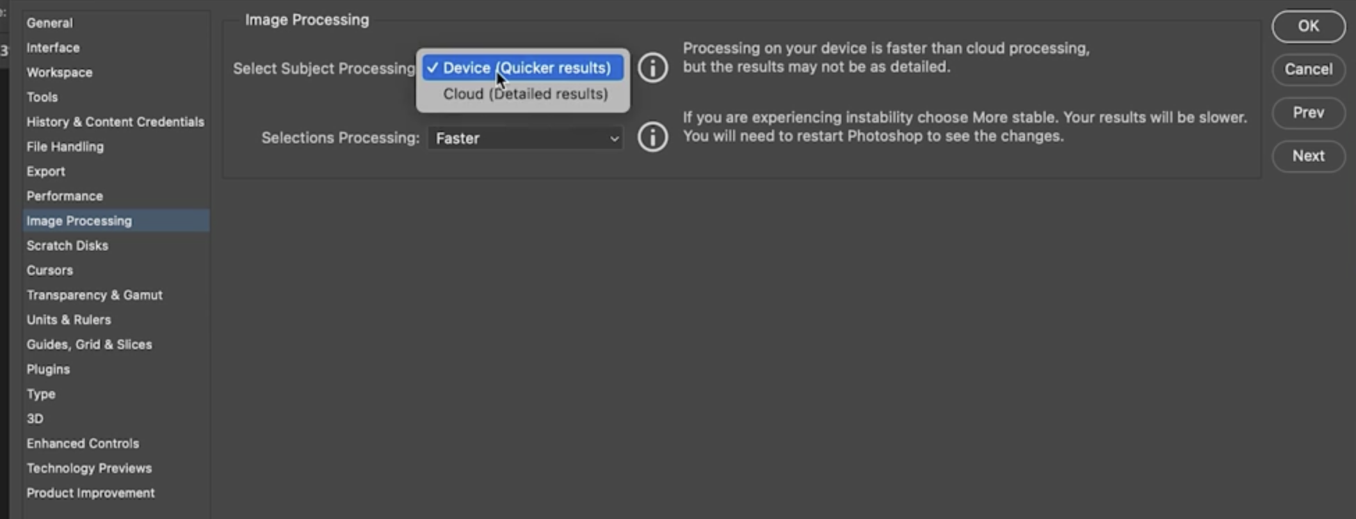 - 기본적으로 Select Subject는 로컬 장치에서 처리되므로 빠르지만, 정밀도는 떨어질 수 있습니다.