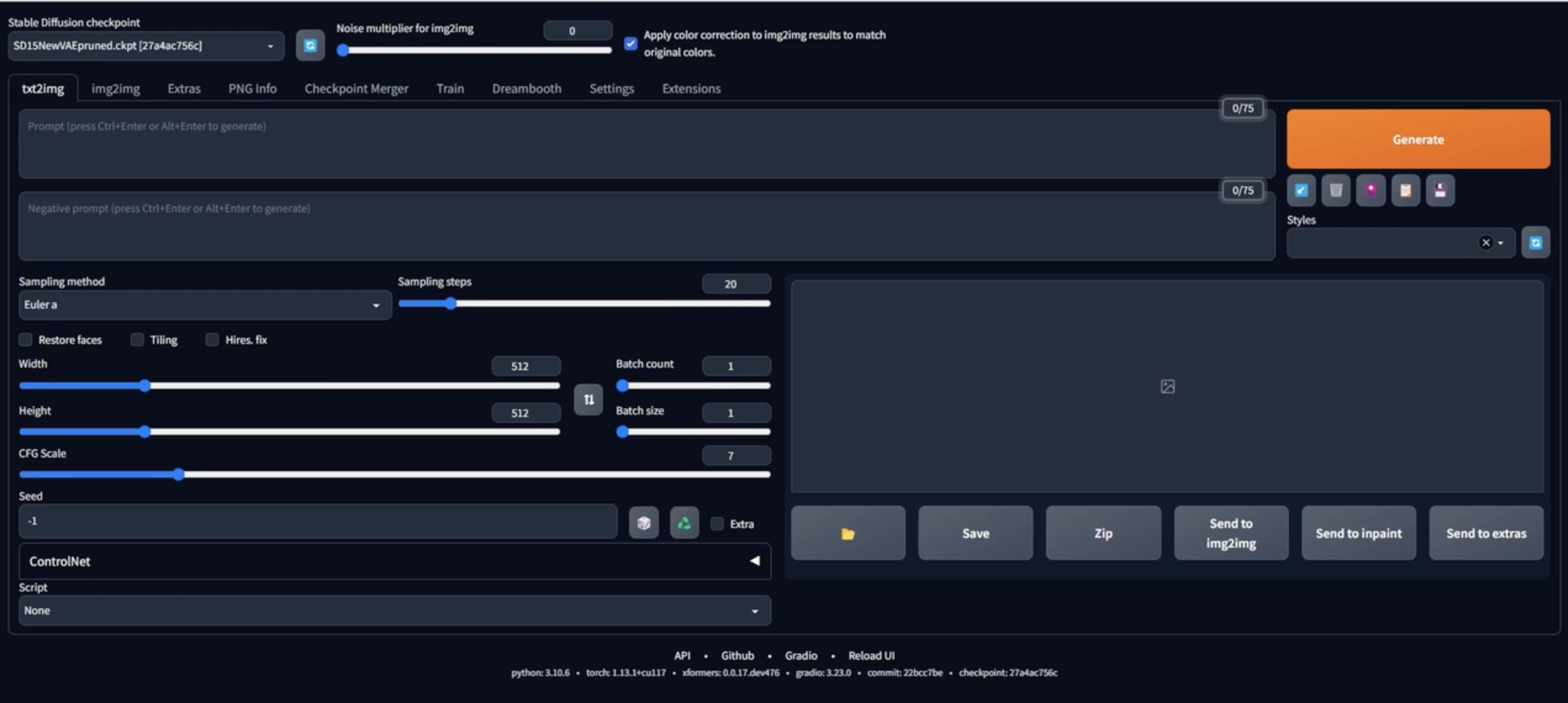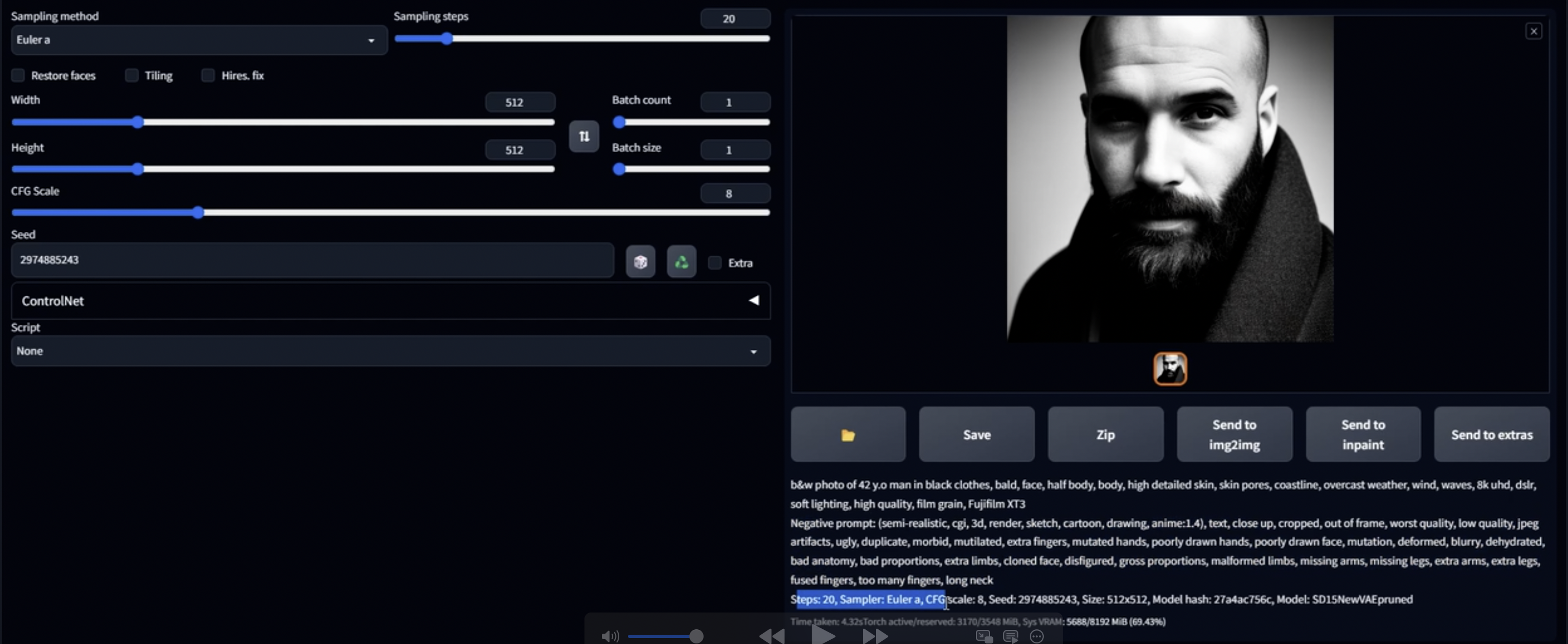 - 해상도, CFG scale 등 모두 확인 가능