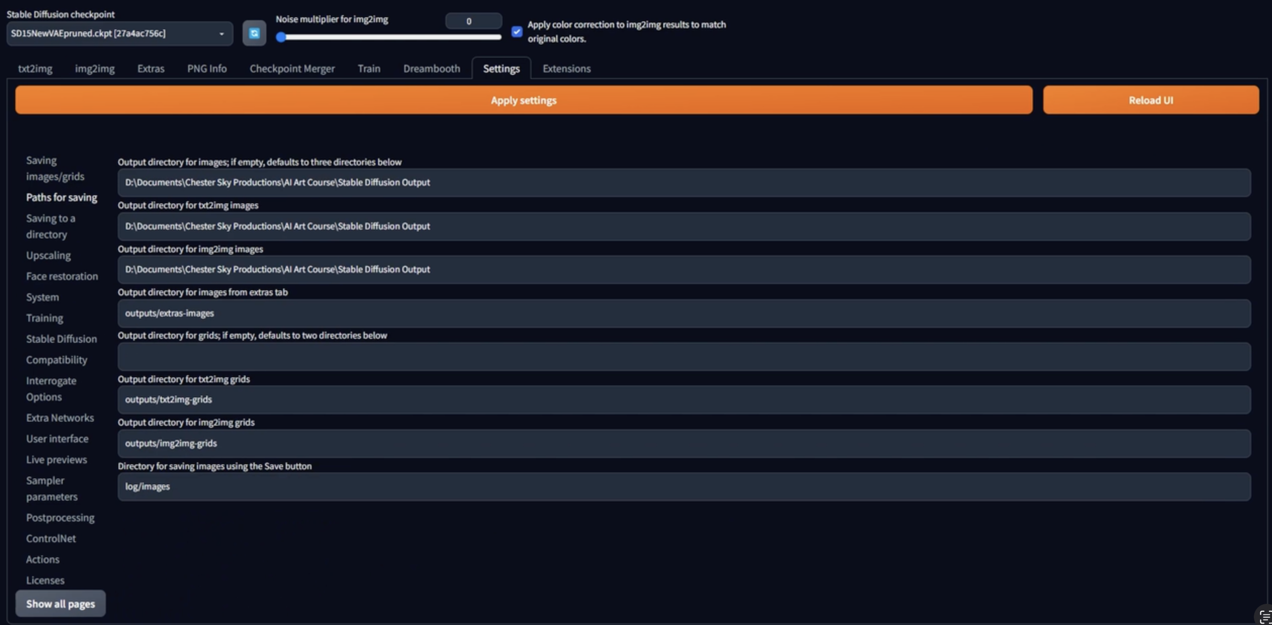 - Apply settings를 누르고 UI를 다시 로드합니다.